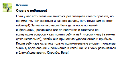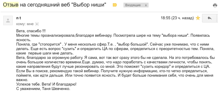Отзывы на вебинар-практикум "Выбор ниши: доходной и любимой"